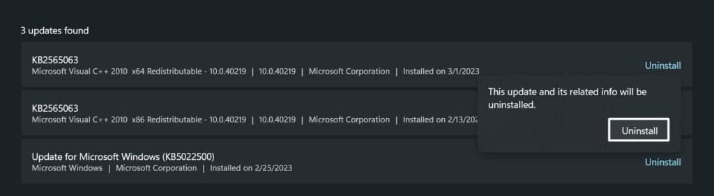 4.Na koniec kliknijOdinstalujponownie po wyświetleniu nowego monitu o usunięcie aktualizacji.
