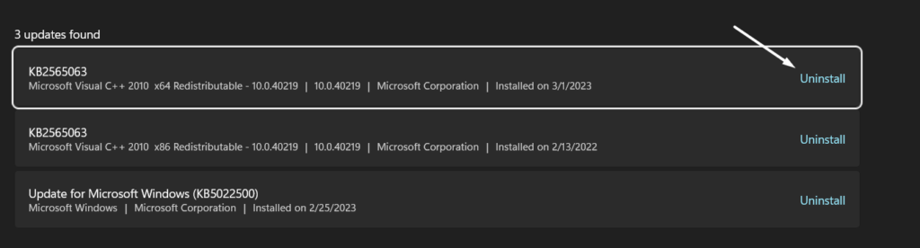 3.Kliknij naOdinstalujprzycisk obok błędnej aktualizacji, którą chcesz odinstalować z systemu Windows.