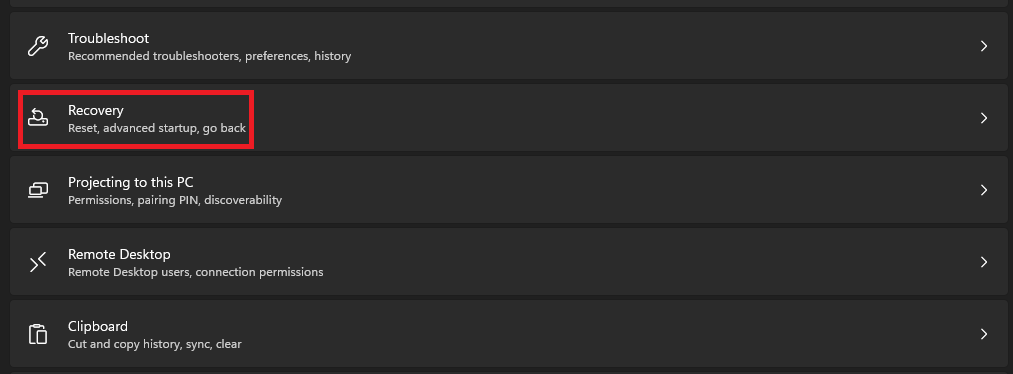 Na koniec, jeśli nic nie rozwiąże problemu niedziałającej klawiatury ekranowej, możesz to rozważyćresetowanie komputera z systemem Windows do ustawień domyślnych. Spowoduje to rozwiązanie problemu z klawiaturą ekranową, jeśli pojawi się ona z powodu usterek w systemie operacyjnym. Spróbuj więc zresetować komputer z systemem Windows 11 do ustawień domyślnych, wykonując poniższe instrukcje, aby sprawdzić, czy to działa: