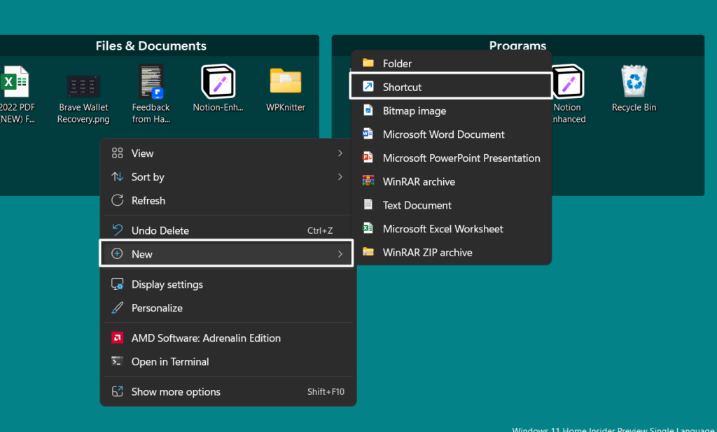 1.Kliknij prawym przyciskiem myszy puste miejsce na pulpicie i najedź kursorem na strzałkęNowyi wybierzSkrótz podmenu.