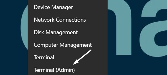 1.Kliknij prawym przyciskiem myszyMenu startowena pasku zadań i wybierzTerminal (administrator)z niego opcję.
