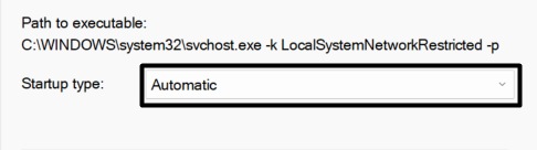 3.Kliknij go dwukrotnie, aby otworzyćWłaściwościmonit i ustawTyp uruchomienia:menu rozwijane doAutomatyczny.