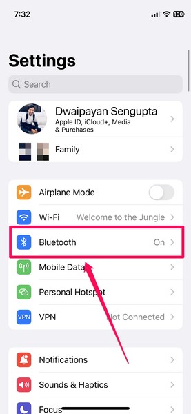 7.Teraz na swoim iPhonie uruchom aplikacjęAplikacja Ustawieniai idź doBluetooth.