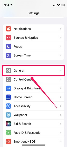 2.Przewiń w dół i dotknijOgólnyopcja na liście.