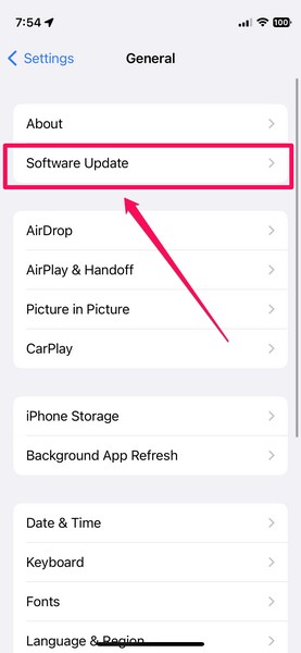 3.Następnie dotknijAktualizacja oprogramowaniaopcja.