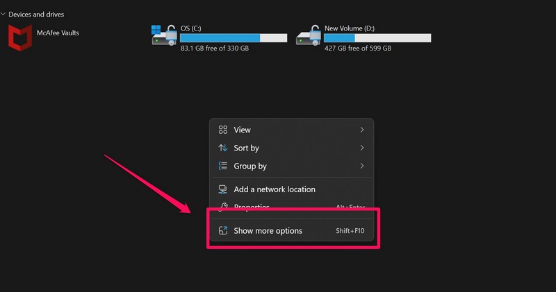 Należy jednak pamiętać, że chociaż w początkowym menu kontekstowym na stronie Pulpit można wyświetlić opcję Odśwież, należy kliknąć przyciskPokaż więcej opcjiaby uzyskać do niego dostęp w Eksploratorze plików.