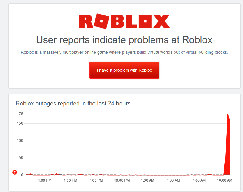 Możesz otrzymać błąd dołączenia Roblox 524, jeśli serwery Roblox nie działają z powodu konserwacji serwera lub mają inne problemy. Aby to sprawdzić, możesz rzucić okiem na wzmianki w mediach społecznościowych, takich jak Twitter czy Facebook. Jeśli nic tam nie ma, sprawdź status serwera Roblox na stronie takiej jakDetektor w dół.