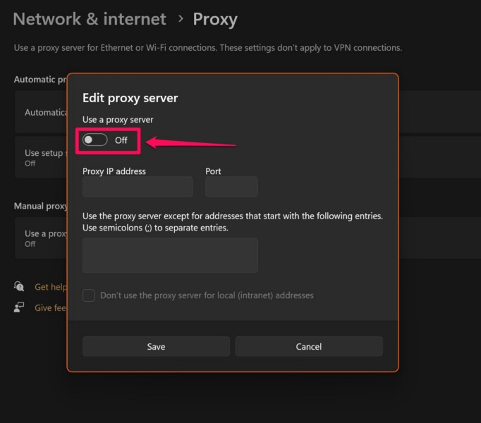 2. Wyłącz serwer proxy na komputerze Windows 11 lub laptopie