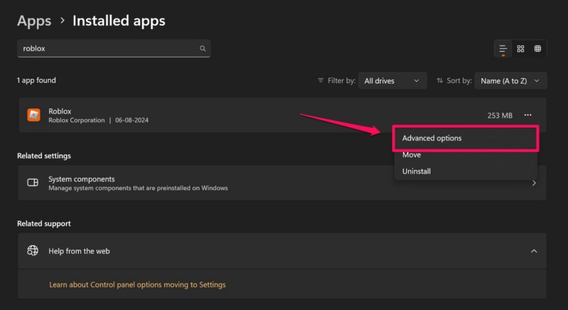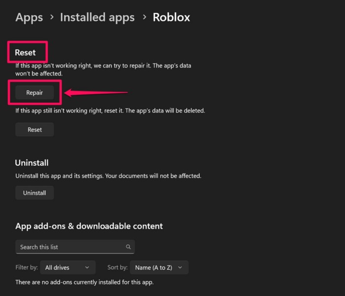 5. Zresetuj/napraw Roblox aplikacja na komputerze Windows 11 lub laptopie