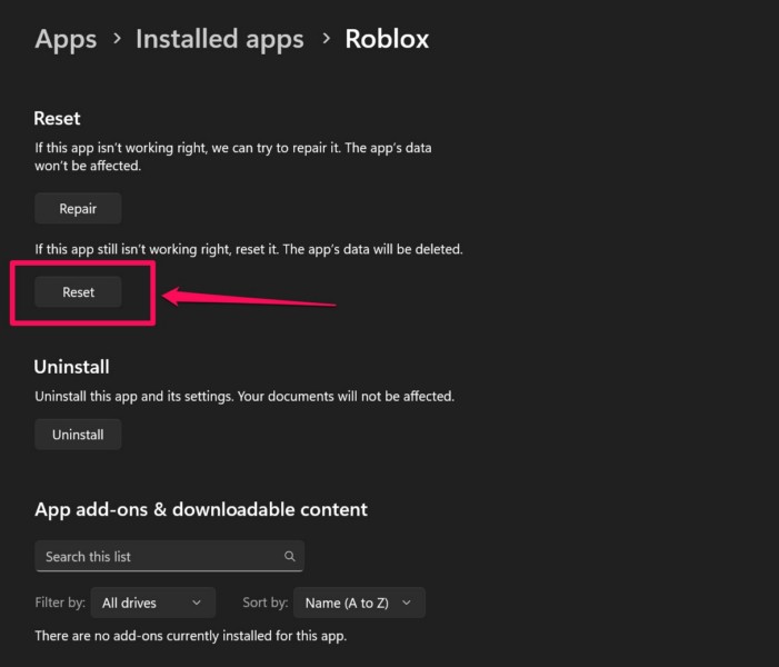 Powiedziawszy to, wykonaj kroki tuż poniżej, aby zresetować aplikację Roblox: