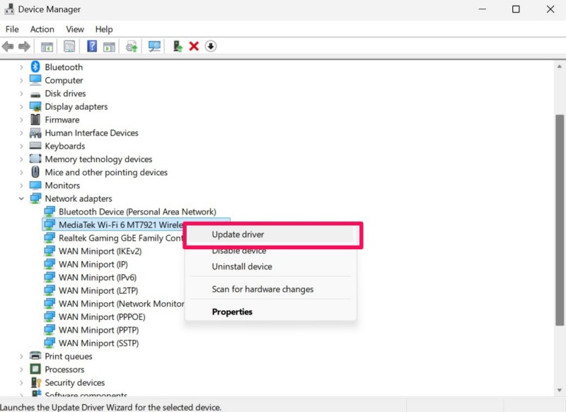 3. Zaktualizuj sterownik sieciowy na komputerze Windows 11 lub laptopie