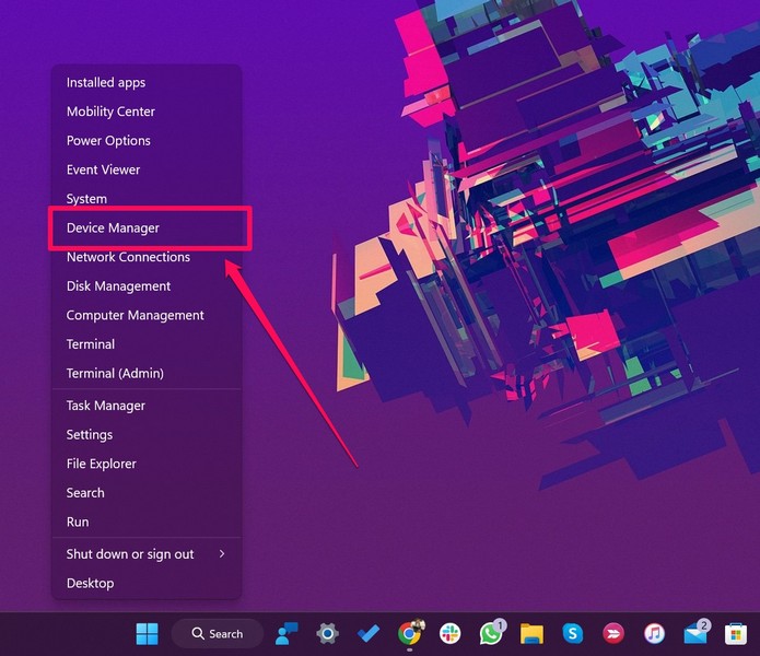 1.Użyj systemu Windows + X, aby otworzyćSzybkie linkimenu i wybierzMenedżer urządzeń.