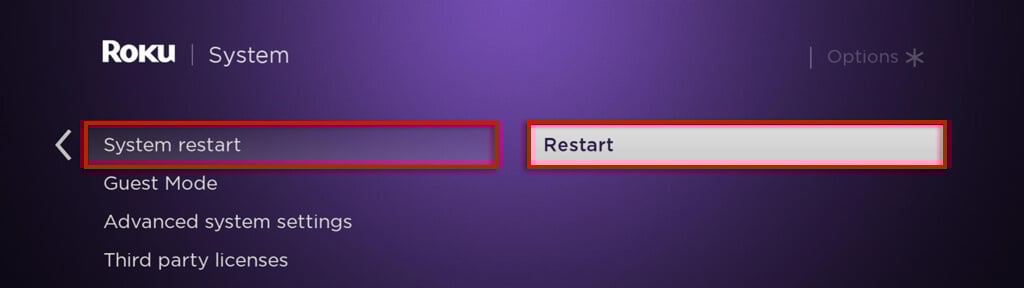 2. Uruchom ponownie urządzenie Roku