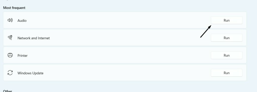 2.Na następnym ekranie wybierzInne narzędzia do rozwiązywania problemówi poszukajAudiopod Najczęściej.