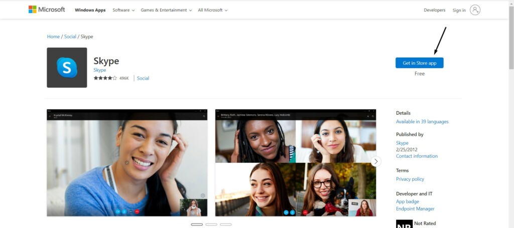 3.Po odinstalowaniu kliknij, aby przejść do strony Microsoft Store programu Skype i kliknąćPobierz aplikację Sklep.