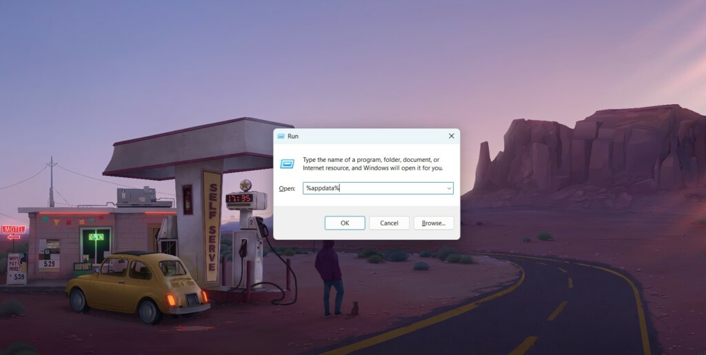 2.NaciśnijWindows + Rklawiszy jednocześnie, wpisz%dane aplikacji%w nim i naciśnijWchodzić klawisz.