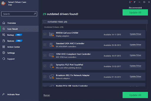 Twój system zostanie automatycznie zidentyfikowany przez usługę Smart Driver Care, która następnie zlokalizuje odpowiednie sterowniki. Nie musisz ryzykować pobrania i zainstalowania nieprawidłowego sterownika, nie musisz znać konkretnego systemu operacyjnego, na którym działa Twój komputer, i nie musisz się martwić, że popełnisz błąd podczas ich instalacji. Oto kroki: