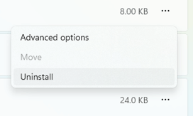 Krok 4:Kliknij trzy kropki obok nazwy i wybierz opcję Odinstaluj.