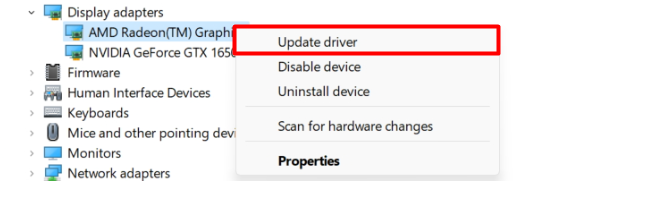 2.Następnie rozwińAdaptery wyświetlaczasekcję, klikając ją dwukrotnie i klikając prawym przyciskiem myszy sterownik ekranu w tej samej sekcji.