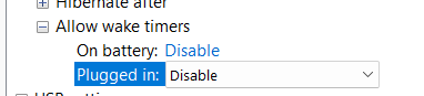 5.Na koniec ustaw obaBateriaIPodłączonyopcje doWyłączonypodZezwalaj na timery budzeniapodrozdział.