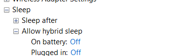 5.Następnie ustawNa bateriiIPodłączonyopcjaWyłączonypod Zezwól na sen hybrydowyaby wyłączyć tryb hybrydowy.