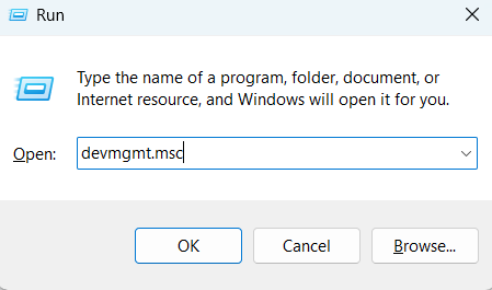 1.Aby to zrobić, użyjWindows + Rskrót, aby otworzyćUruchomić, typdevror.msc.msci naciśnijWchodzićotworzyćMenedżer urządzeń.