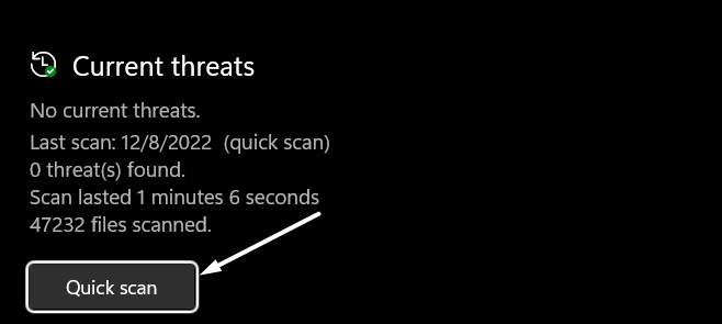 3.Następnie kliknijSzybkie skanowanieprzycisk wAktualne zagrożeniasekcję, aby rozpocząć szybkie skanowanie w poszukiwaniu wirusów i złośliwego oprogramowania.