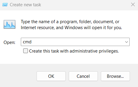 1.Aby to zrobić, naciśnijWindows + Rskrót, aby otworzyć plikUruchom okno dialogowe, typcmdi naciśnijWprowadź kluczaby to wykonać.