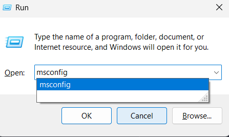 1.NaciśnijOknaIRklawisze jednocześnie, aby otworzyćUruchomićprogram, wpiszmsconfigw nim i naciśnijWchodzić.