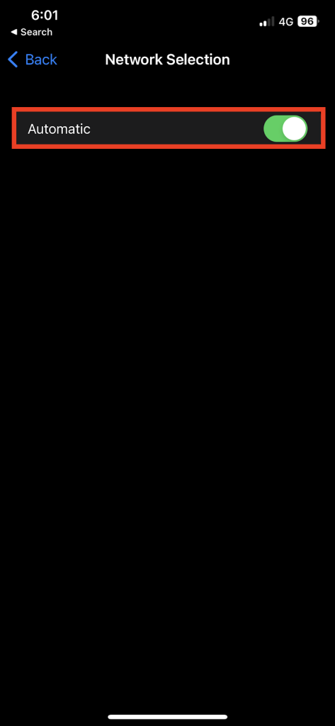 Wyłączenie i włączenie automatycznego wyboru sieci zapewni połączenie z odpowiednim zestawem operatorów sieciowych, co umożliwi stabilne połączenie sieciowe. Aby ponownie nawiązać połączenie i wyłączyć opcję „Tylko SOS” w iPhonie, należy wyłączyć tę funkcję i włączyć ją ponownie.