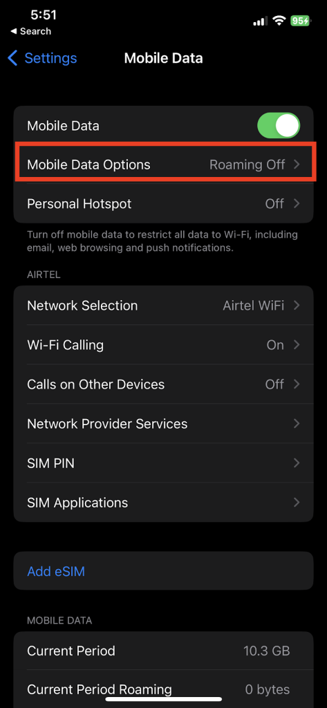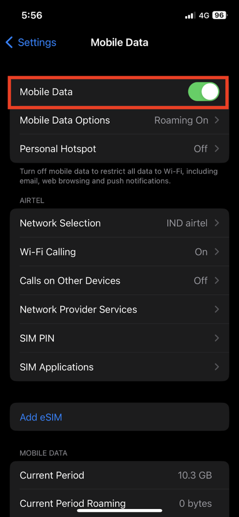 Upewnij się, że podróżując z jednego stanu lub do innego stanu lub kraju, włącz roaming danych w swoim iPhonie. Komunikat „Tylko SOS” może zostać wyświetlony, jeśli Twoja karta SIM nie obsługuje roamingu i jest głównym winowajcą. Aby włączyć roaming danych na swoim iPhonie, wykonaj czynności wymienione poniżej: –