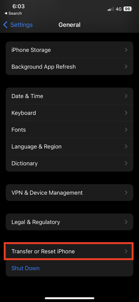 2.Przewiń w dół i kliknijPrzenieś lub zresetuj iPhone'a.