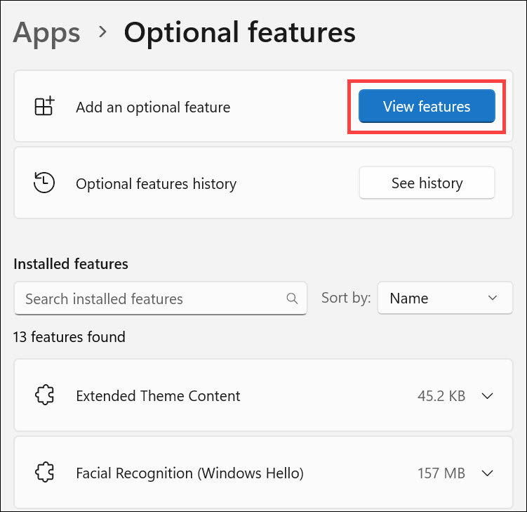 3.KliknijZobacz funkcjeprzycisk obok „Dodaj opcjonalną funkcję”, aby wyświetlić dostępne funkcje opcjonalne.