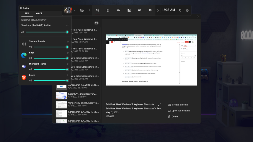 Jeśli nie możesz znaleźć nakładki Spotify w Centrum akcji komputera z systemem Windows 11, możesz to zrobićużyj innej metodyaby przykleić go na ekranie. Aby to zrobić, musisz skorzystać z paska gier. Jedyną wadą tego obejścia jest to, że należy go stosować przy każdym uruchomieniu komputera. Jeśli jesteś gotowy, aby to zrobić, wykonaj poniższe kroki, aby zrobić to samo z łatwością: