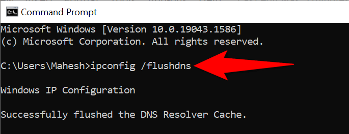 - Wpisz następujące polecenie w wierszu poleceń i naciśnijWchodzić: ipconfig /flushdns