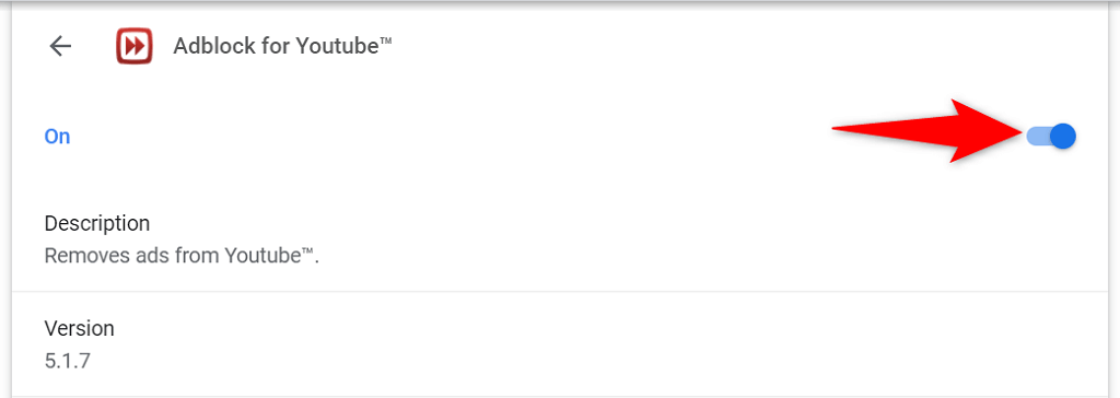- Wyłącz przełącznik, aby wyłączyć rozszerzenie blokujące reklamy.