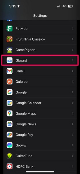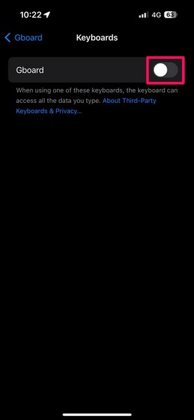 Aplikacje klawiaturowe innych firm, takie jak Gboard, mogą również powodować problemy z wyszukiwaniem Spotlight na Twoim iPhonie. Jeśli więc używasz takiej aplikacji na klawiaturze na urządzeniu z systemem iOS, możesz spróbować wyłączyć ją na swoim urządzeniu, aby sprawdzić, czy rozwiąże to wspomniany problem.