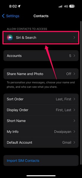 3.Teraz dotknijSiri i wyszukiwanieopcję na następnej stronie.