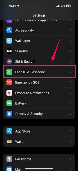 2.ZlokalizujIdentyfikator twarzy i hasłoustawienia na liście idotknij, aby otworzyć.