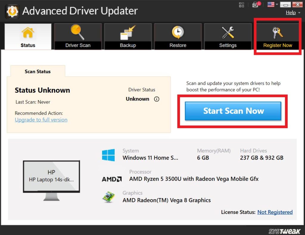 - Zarejestruj program, aby odblokować pełny potencjał ADU, klikając naZarejestruj się terazopcję z panelu.