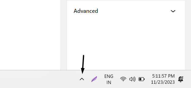 1.Kliknijikona strzałkiw prawym dolnym rogu paska zadań komputera, aby wyświetlić menu podręczne.