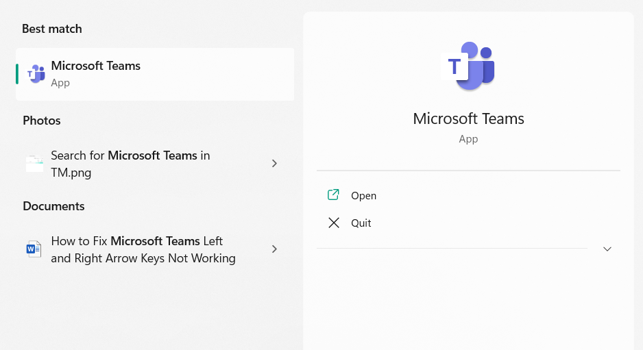 1.TypZespoły MicrosoftuwPole wyszukiwania systemu Windowsi kliknij go prawym przyciskiem myszy podNajlepszy mecz.