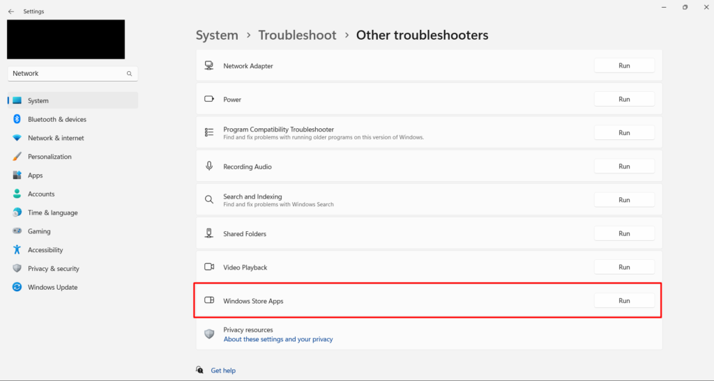 7. Uruchom narzędzie do rozwiązywania problemów z aplikacją Windows Store