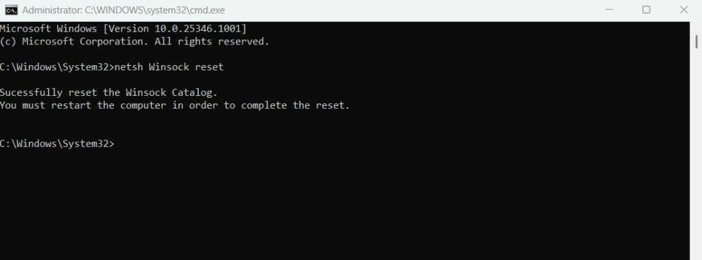 3.ZamknijWiersz poleceńi uruchom ponownie komputer z systemem Windows 11, aby odświeżyć sieć.