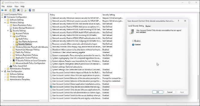 Aby rozwiązać ten problem, możesz wyłączyć ustawienie zasad sprawdzania podpisu infrastruktury klucza publicznego. To ustawienie zasad wymaga, aby aplikacje wymagające uprawnień administracyjnych przeszły kontrolę podpisu infrastruktury kluczy publicznych. Oto jak wyłączyć sprawdzanie podpisu PKI: