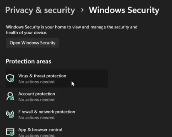 Krok 3:Następnie kliknij Ochrona przed wirusami i zagrożeniami, aby uruchomić Zabezpieczenia systemu Windows.