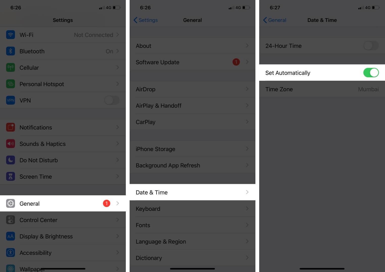 Idź doUstawienia→Ogólny→Data i godzina. WłączUstawić Automatycznie.