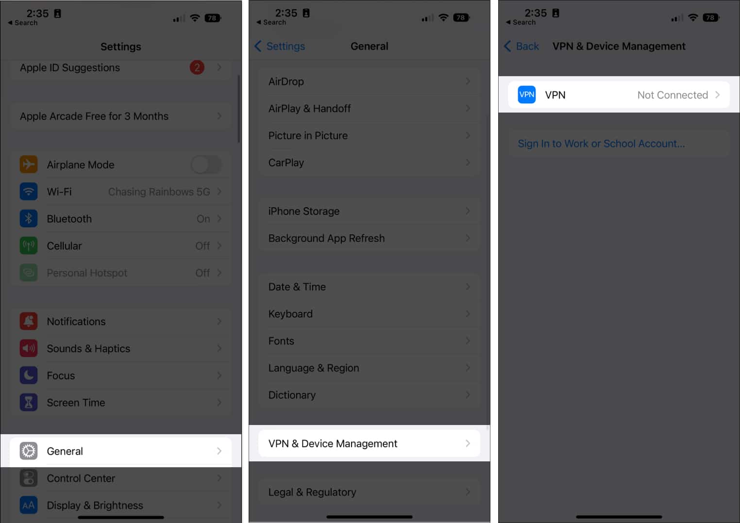 Jeśli więc Twoja sieć VPN znajduje się w innym kraju niż lokalizacja Twojego App Store, może to uniemożliwić jej załadowanie. Aby to wyłączyć, przejdź doUstawienia→Ogólny→Zarządzanie VPN i urządzeniami. UzyskiwaćVPN, a następnie przełączwyłączony.
