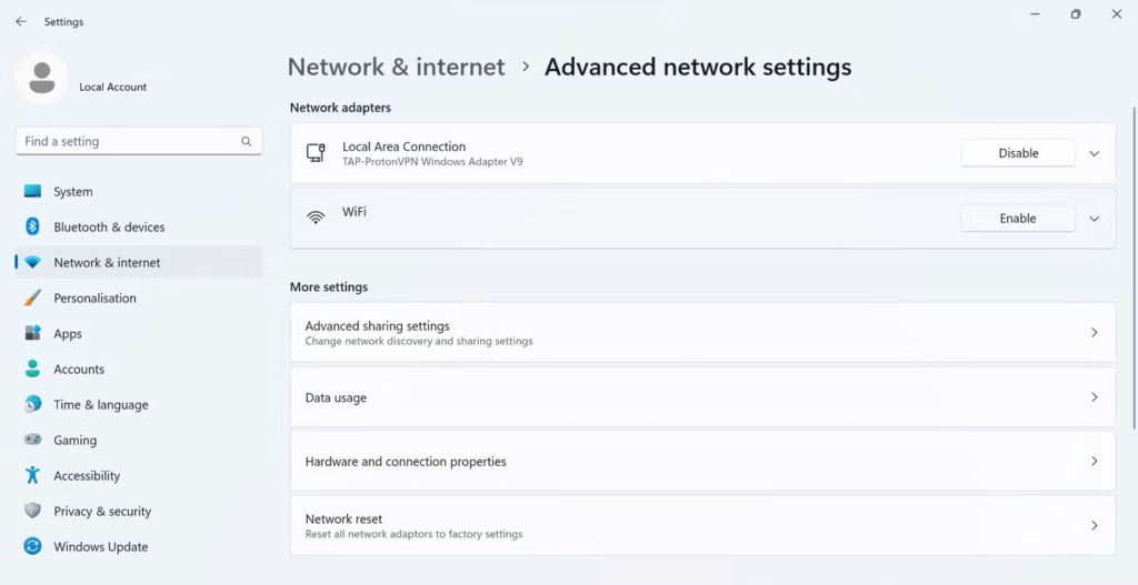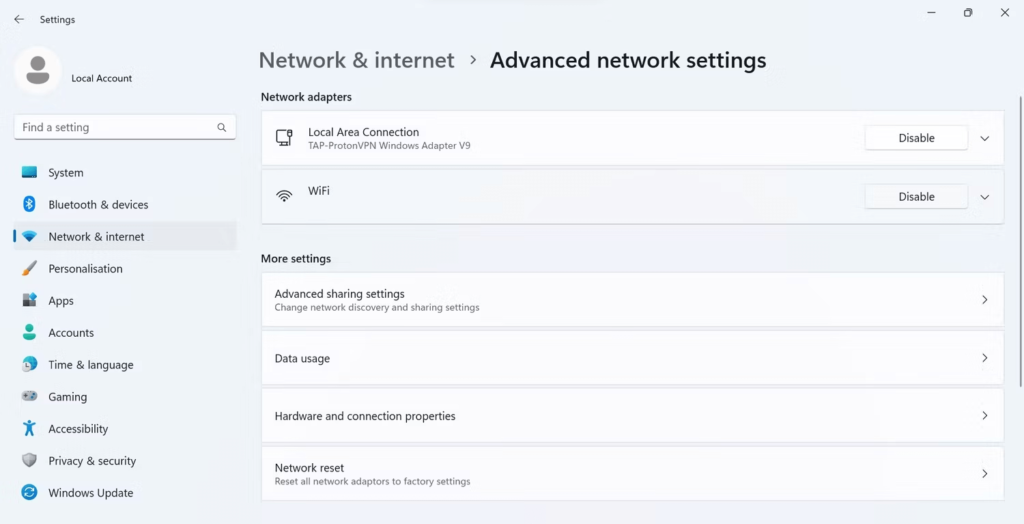 Krok 3:Idź doZaawansowana sieć Ustawieniapo tym.