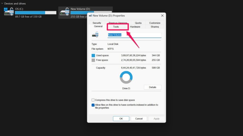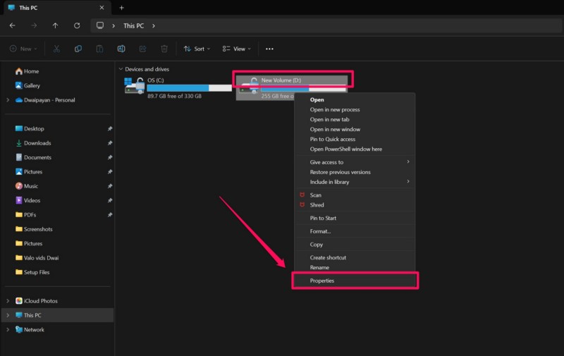 Ta metoda powinna pomóc w wykryciu błędów na dyskach twardych i podjęciu niezbędnych działań w celu ich rozwiązania. Wykonaj więc poniższe czynności, aby sprawdzić dyski twarde za pomocą narzędzia CHKDSK systemu Windows 11 na komputerze stacjonarnym lub laptopie za pośrednictwem Eksploratora plików: